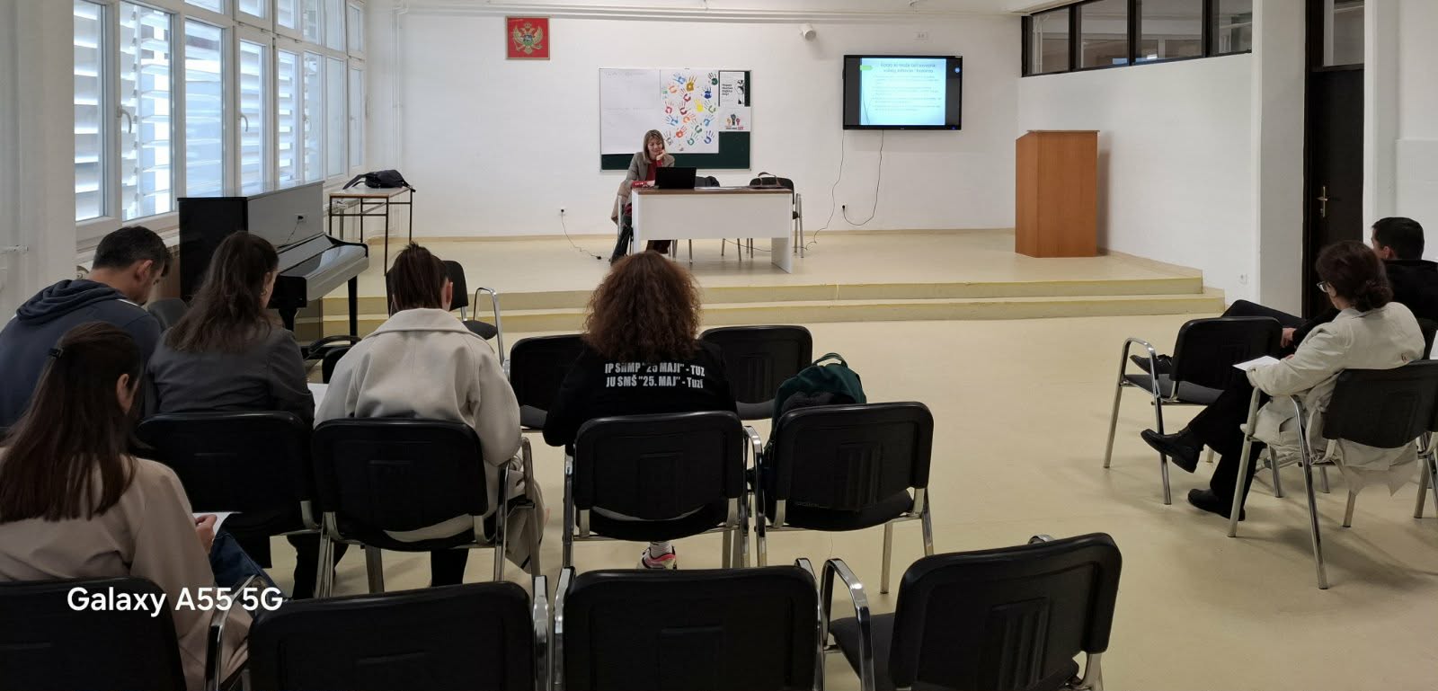 U JU SMŠ „25. maj“ Tuzi juče su održane radionice posvećene savremenim izazovima u radnom okruženju, sa posebnim fokusom na uticaj digitalnih tehnologija i vještačke inteligencije na zdravlje zaposlenih. Radionice su realizovane pod nazivom „Edukacija na radnom mjestu – AI u kontekstu zaštite i zdravlja na radu i ravnoteža između posla i privatnog života“, a bile su namijenjene nastavnom, stručnom i administrativnom osoblju škole. Poseban kvalitet ovog programa je što se radionice odvijaju direktno na radnom mjestu, kod poslodavca, što zaposlenima omogućava da u poznatom okruženju otvoreno govore o pritiscima, stresu i svakodnevnim izazovima sa kojima se suočavaju.